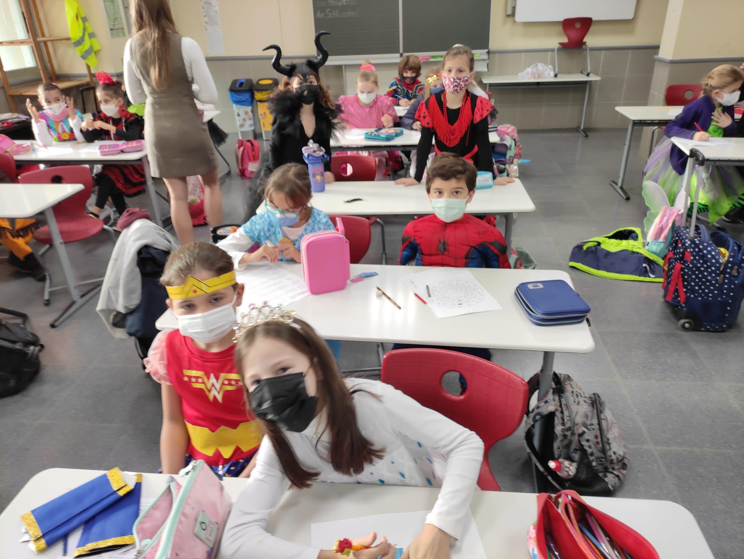 Am Freitag, dem 12. Februar, fand das diesjährige Karnevalsfest in der Grundschule statt. Natürlich mit Maske und ausschließlich im Klassenverband. Das hinderte uns trotzdem nicht daran, farbenfroh, bunt und lustig in der Schule zu feiern.