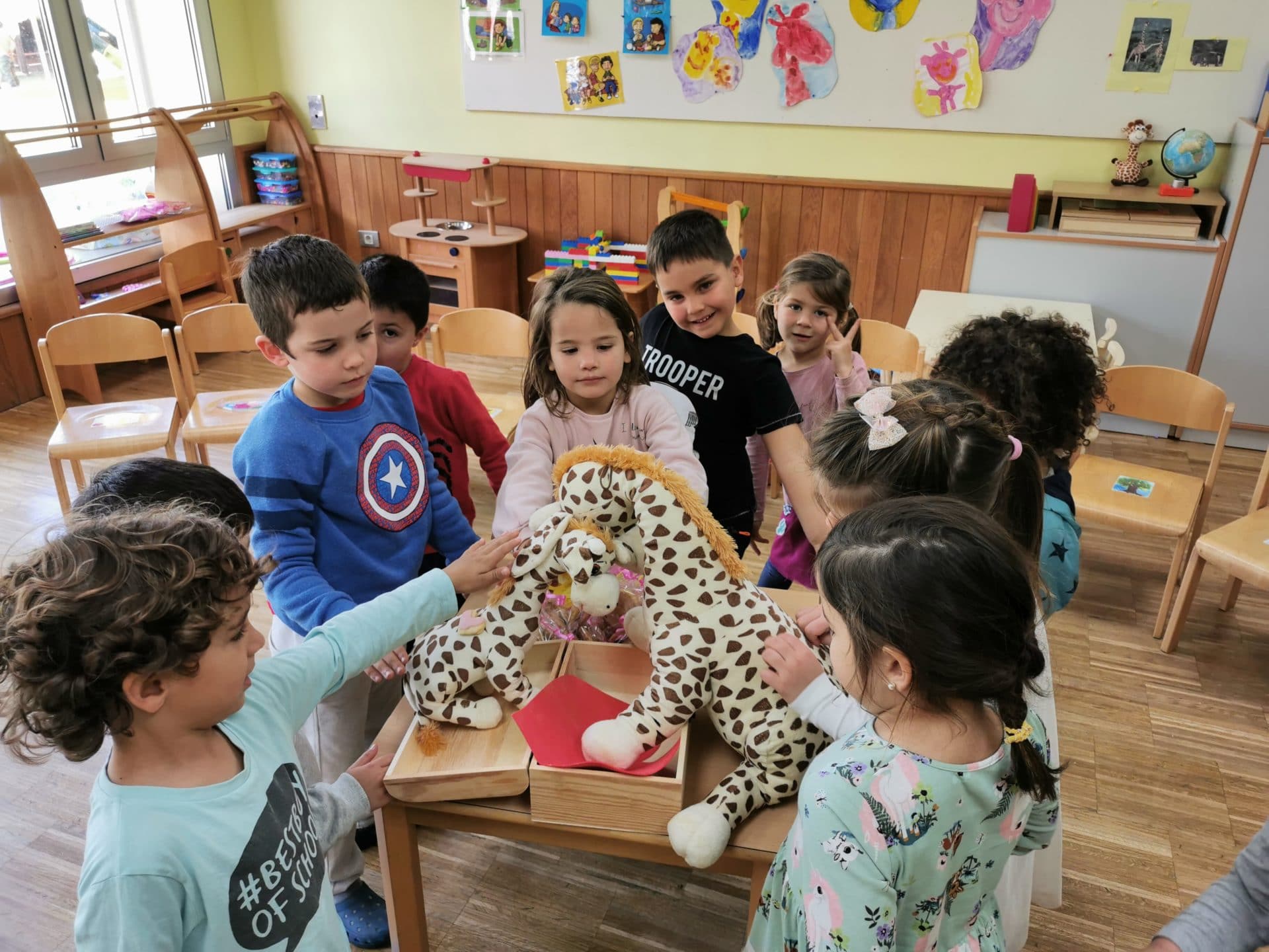 Die Erzieherinnen des Kindergartens führen momentan das Projekt “Giraffensprache” mit den Kindern durch. Inhaltlich bezieht sich das Projekt auf die “gewaltfreie Kommunikation” von Marshall Rosenberg.