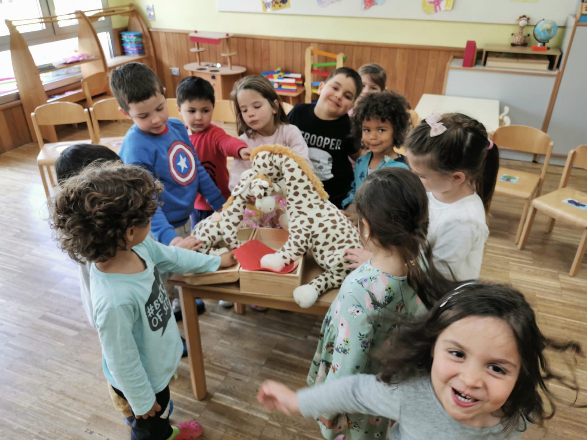 Es ist wichtig, dass die Kinder wahrnehmen „was mit ihnen passiert, wenn sie sauer oder wütend werden und was dann bei den anderen Kindern passiert“. Sie lernen sich verbal miteinander auseinander zu setzen, ohne sich körperlich anzugreifen. Im Alltag bearbeiten die Erzieherinnen mit den Kindern die Streitsituationen und Auseinandersetzungen, indem sie gemeinsam die Giraffensprache einsetzen und somit die Konflikte lösen. Zudem wird das Giraffenlied mit den Kindern gesungen und der speziell eingeübte Tanz getanzt. Die Giraffensprache wird uns im Laufe des Kindergartenjahres weiterhin begleiten.